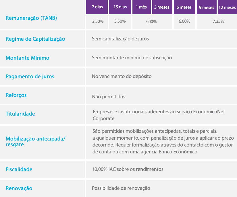 Este é um depósito efectuado à sua medida, com subscrição efectuada exclusivamente através do EconomicoNet. Escolha a solução de poupança mais vantajosa para si.